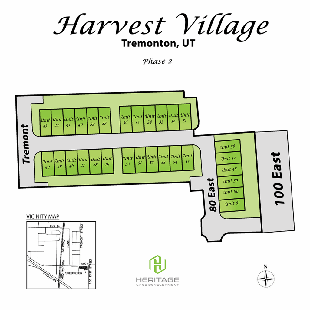 Harvest Village Harvest Acres is located on the edge of Tremonton. This is a wonderful community with hometown values. Tremonton has many amenities and is only 20 minutes north of Brigham City. A great place to raise your family with lots of outdoor recreation.